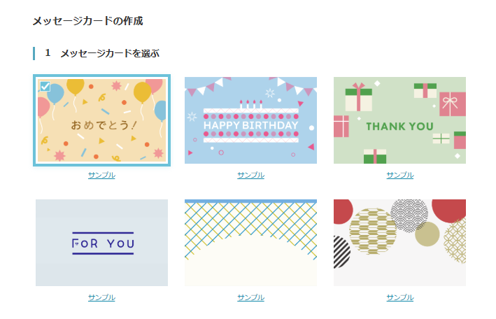 メッセージカードのデザインを選び、内容を入力します。