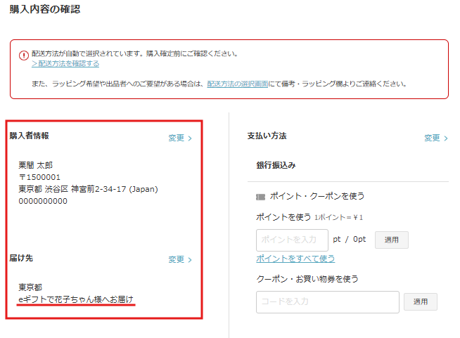 3.購入者情報を入力し、配送方法、支払い方法を指定する