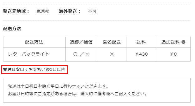 必ず「発送目安」を確認してください。