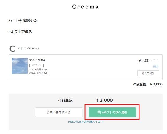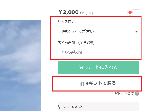 1.作品ページの「eギフトで贈る」を選択してカートに入れる