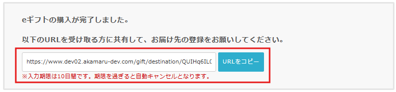 5.発行されたURLをコピーし、受取人に連絡する
