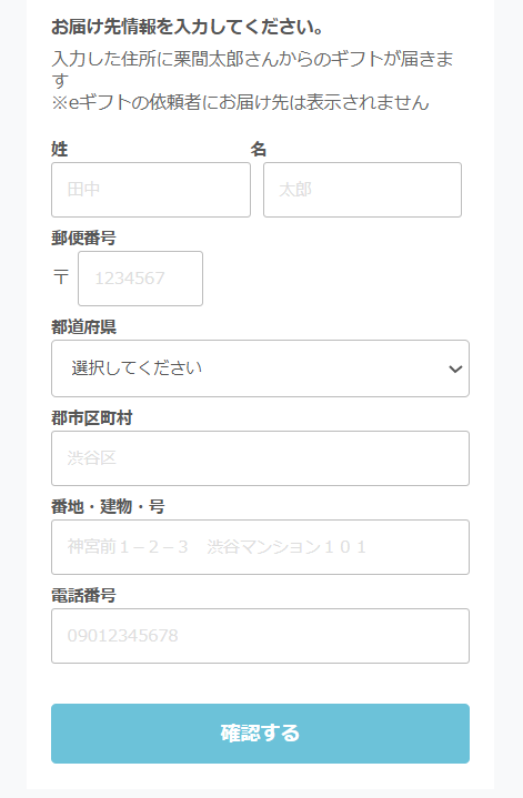 eギフトのメッセージカード(URL)を受け取った場合には、お届け先を入力し作品をお受け取り下さい。